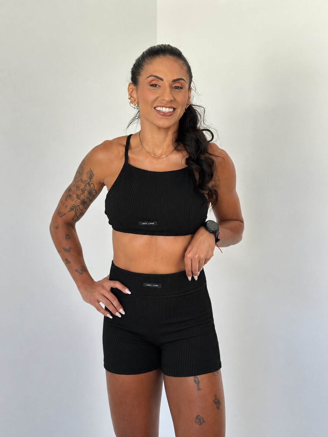 Short Vivi Meia Coxa Canelado Preto